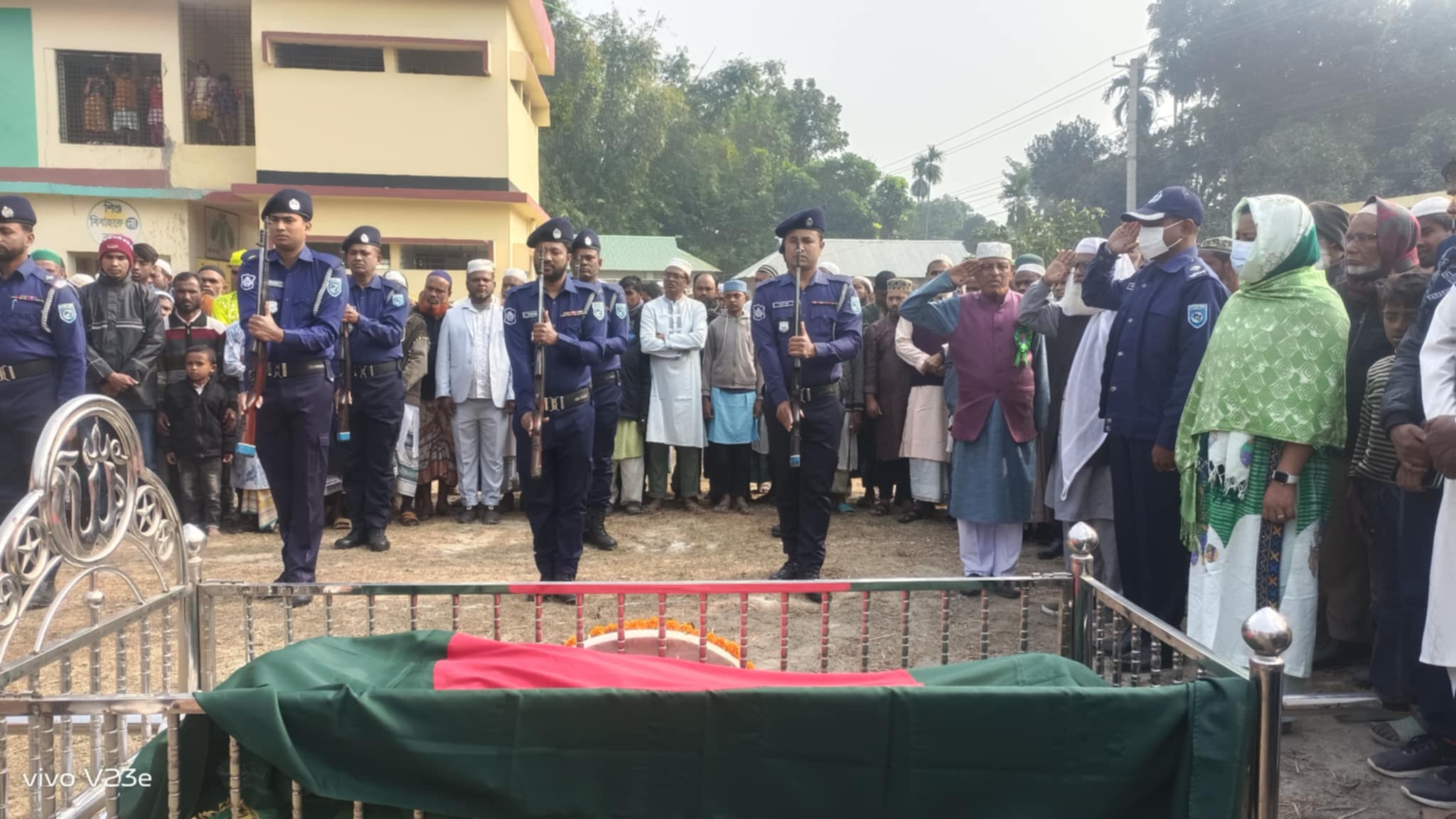 বৃহস্পতিবার ( ৯ জানুয়ারি) বেলা ১১ টার দিকে রাষ্ট্রীয় মর্যাদায় উপজেলার কাকিনা ইউনিয়নের চাপারতল সরকারি প্রাথমিক বিদ্যালয় মাঠে কালীগঞ্জ উপজেলা নির্বাহী অফিসার সিফাত আনোয়ার তুম্পার নেতৃত্বে তাঁকে সম্মান প্রদর্শন করা হয়। পরে জানাযার নামাজ শেষে কাকিনা চাপাতল কেন্দ্রীয় কবরস্থানে দাফন করা হয়।
