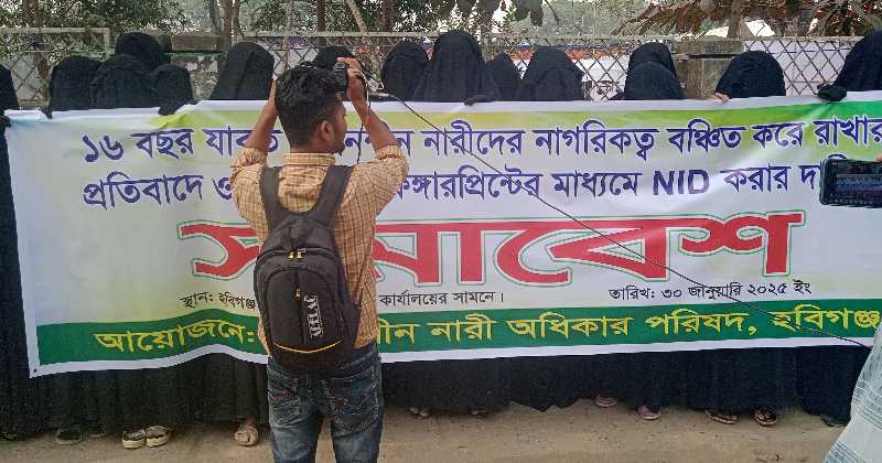 বক্তারা আরো বলেন — অনেকে জানেন না, এখনও বহু পর্দানশীন নারী জাতীয় পরিচয়পত্র (NID) পাননি। এটা কোনো ছোট্টো সংখ্যা নয়, সংখ্যাটা ৩০ লাখেরও বেশি৷ অথচ তারা এই দেশেরই নাগরিক, তাদের পিতা-মাতা বাংলাদেশি, এবং তারা নিজেরাও এই দেশের মাটিতে জন্মগ্রহণ করেছেন। আমরা এমন একটি সমাজে বসবাস করছি, যেখানে নারীদের অধিকার নিয়ে অনেকে অনেক কিছুই বলেন, কিন্তু পর্দানশীন নারীদের অধিকার লঙ্ঘনের বিরুদ্ধে তারা নিশ্চুপ। একজন নারী যদি তার ধর্মীয় অনুশাসন মেনে চলতে চান, তাহলে কেন তাকে মৌলিক অধিকার থেকে বঞ্চিত করা হবে? একজন পর্দানশীন নারীর মৌলিক অধিকার সাংবিধানিক অধিকার নিশ্চিত করার লক্ষ্যে মুখচ্ছবি ছাড়া ফিঙ্গারপ্রিন্ট মাধ্যমে এনআইডির দাবী আমরা করছি।