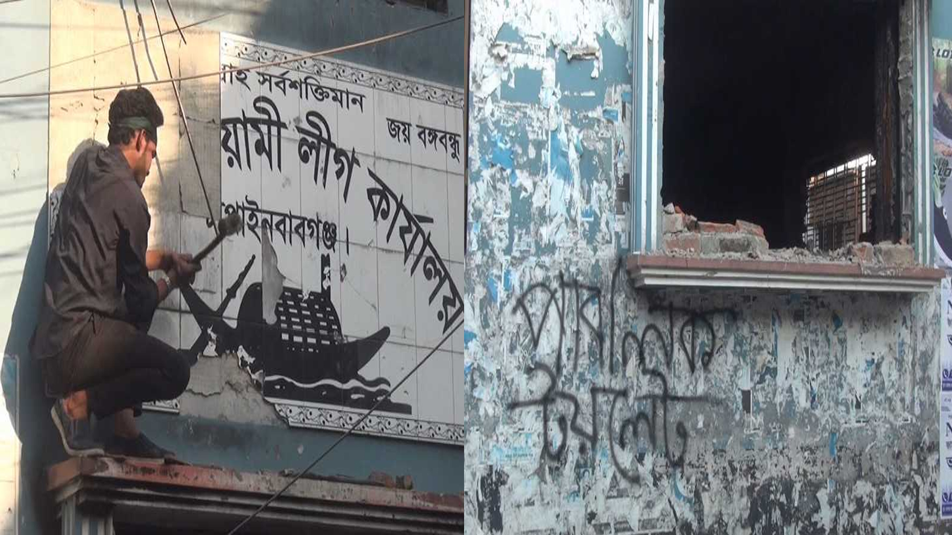 ভাঙচুরের পর গান বাজিয়ে উল্লাস করতে দেখা যায় ছাত্র জনতাকে।