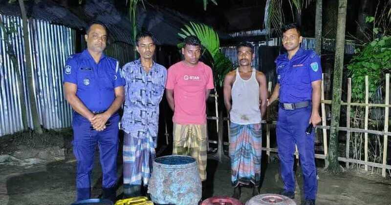 হবিগঞ্জের নবীগঞ্জের উপজেলার দীঘলবাক ইউনিয়নের কামার গাঁওয়ে সেনবাহিনীর গভীর রাতের অভিযানে ৩ চিহ্নিত মাদক ব্যবসায়ীকে ও দেশীয় মদ,এবং মদ তৈরীর সরঞ্জাম সহ তাদেরকে আটক করেন বানিয়াচং ক্যাম্পের একদল সেনাবাহিনী৷জানাযায়,গোপন সংবাদের ভিত্তিতে ৪নং দীঘল বাগ ইউনিয়নের কামার গাঁও ব্রীজের সংলগ্ন মাদক কারবারিদের আস্তানায় ৩রা(বুধবার)গভীর রাত ৪ঠা সেপ্টেম্বর(বৃহস্পতিবার)রাত ৩টার দিকে বানিয়াচং সেনা ক্যাম্পের বিএ-৯৫২৬ মেজর কাজী ফয়সাল আহমেদ-৬ বীর এঁর নেতৃত্বে এই বিশেষ অভিযানটি পরিচালনা করা হয়েছে।পরে দেশীয় মদ ১২ লিটার,মদের ওয়াস ৩৬০ লিটার,দেশীয় মদ তৈরীর মেডিসিন ৬ কেজি সহ কামার গাঁও গ্রামের ৩ মাদককে আটক করি।অন্যদিকে আসামীকে ছিনিয়ে নিতে নাকি দামধর করছিলো!এরা কারা তাহলে?গ্রেফতারকৃত ৩ ব্যবসায়ী নুনুয়া রবিদাশের পুত্র,গাছা রবিদাস (৪২)।আবু রবিদাশের পুত্র লাল রবিদাশ (৩২)ও আবোয়া রবিদাশের পুত্র যোগেশ রবিদাশ(২৫)কে আটক করেন সেনাবাহিনী।এসময় অভিযানের বিষয়টি আচ করতে পেরে একজন আসামি পালিয়ে যায়।উক্ত মাদক ব্যবসায়ীরা এলাকার যুব সমাজ ধ্বংসের অন্যতম মূল কারণ ছিল বলেও জানিয়েছেন সেনাবাহিনী৷পরে গ্রেফতারকৃত আসামীদেরকে নবীগঞ্জ থানার ডিউটি অফিসার এস আই অনিক পাল এর নিকট হস্তান্তর করা হয়।থানা পুলিশ মাদক আইনে তাদের বিরুদ্ধে মামলা রুজু করে বিজ্ঞ আদালতের মাধ্যমে কারাগারে প্রেরণ করেন।এদিকে মাদক ব্যবসায়ী ও সন্ত্রাসীদের বিরুদ্ধে সেনাবাহিনীর এই অভিযানকে আন্তরিক ধন্যবাদ ও স্বাগত জানাচ্ছেন সচেতন নাগরিক সমাজ৷এই অভিযান অব্যাহত রাখতে সেনাবাহিনীর প্রতি জোরদাবী জানিয়েছেন এলাকাবাসী।