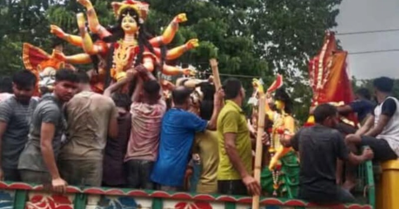 হবিগঞ্জের বানিয়াচংয়ে বিজয়া দশমীর দিন ১১৭টি পূজা মণ্ডপের প্রতিমা বিসর্জনের মাধ্যমে শেষ হয়েছে ১বছরের জন্য শারদীয় দূর্গাপূজা।প্রশাসন,আইনশৃঙ্খলা বাহিনী,সকল রাজনৈতিক নেতৃবৃন্দ, আলেম ওলামা সহ বানিয়াচং এর সর্বস্থরের জনগনের সহযোগিতায় বানিয়াচং উপজেলায় এবার সর্বমোট ১১৭ টি পূজা মন্ডপে উৎসবমুখর ও আনন্দঘন পরিবেশে অনুষ্ঠিত হয়েছে শারদীয় দূর্গা পূজা।২রা অক্টোবর (বৃহস্পতিবার)দশমীর শেষ দিনে দেবী দূর্গা মাকে বিসর্জনের মধ্যে দিয়ে সনাতনধর্মাবলম্বীদেরসবচেয়ে বড় উৎসবের সমাপনী হয়েছে।পূজায় সহযোগীকারী সংশ্লিষ্ট সকলকে পূজা উদযাপন পরিষদ বানিয়াচং উপজেলা শাখার পক্ষ থেকে ধন্যবাদ ওকৃতজ্ঞতাপ্রকাশ করেন উপজেলা পূজা উদযাপন পরিষদ কমিটির সাধারণ সম্পাদক নুপুর কুমার দেব।উল্লেখ্য,প্রতি বছরের ন্যায় এবারও হবিগঞ্জ জেলায় ৬৬১টি পূজা মণ্ডপে শারদীয় দূর্গা পূজা অনুষ্ঠিত হয়েছে।এবং হবিগঞ্জ শহরে প্রতিমা বিসর্জ্জন এর র্যালীতে রাত আনুমানিক সাড়ে ১০টার দিকে দু’পক্ষের ধাক্কা ধাক্কির ঘটনাকে কেন্দ্র করে ৪জনকে কুপিয়ে আহত করার মধ্যে বিসর্জণ এর সমাপ্তি ঘটে।