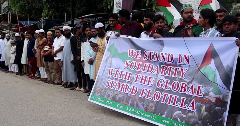 মানবিক সহায়তা বহনকারী গাজামুখী গ্লোবাল সুমুদ ফ্লোটিলার নৌযানে হামলার প্রতিবাদে নওগাঁয় বিক্ষোভ কর্মসূচী করেছে ছাত্র-জনতা। শুক্রবার ৩ অক্টোবর দুপুর ২টারদিকে নওগাঁ শহরের নওজোয়ান মাঠের সামনে ছাত্র-জনতার ব্যানারে এ কর্মসূচী অনুষ্ঠিত পালন করা হয়।কর্মসূচীতে নওগাঁ ডিবেট ক্লাবের সভাপতি তানজিম বীম বারীর সভাপতিত্বে বক্তব্য রাখেন, মাওলানা দেলোয়ার হোসেন সাঈদ, নওগাঁ সদর উপজেলা জামায়াতের সেক্রেটারী ও সাবেক জেলা ছাত্র শিবিরের সভাপতি অ্যাডভোকেট আব্দুর রহিমও ছাত্রনেতা আরমান হোসেনসহ অন্যরা। বক্তারা বলেন, ইসরাইল যুদ্ধের শুরু থেকেই মানবাধিকার লঙ্ঘন করে আসছে। মানবিক সহায়তা বহনকারী গাজামুখী গ্লোবাল সুমদ্র ফ্লোটিলার নৌযানে হামলা করার ঘটনা আন্তর্জাতিক আইনের সুস্পষ্ট লঙ্ঘন। বিশ্ব মোড়লরা চুপ করে তামাশা দেখছে। আমরা তামাশা দেখতে চাইনা। কার্যকর ভূমিকা দেখতে চাই। আমাদের প্রতিবাদ করা ছাড়া অন্য কোন উপায় নাই। আমরা মানবতার পক্ষে দাড়াতে পারি। ইসরায়েলি বাহিনীর নৃশংসতা বন্ধ করাসহ গাজায় অবাধ প্রবেশাধিকার নিশ্চিত এবং মৌলিক অধিকার থেকে বঞ্চিত করা অবিলম্বে বন্ধ করার দাবী জানান বক্তারা।