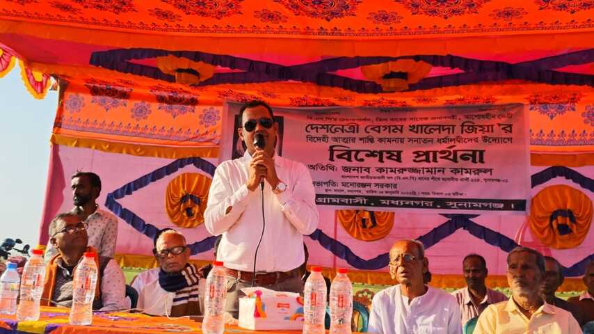 বিশেষ প্রার্থনায় প্রধান অতিথি হিসেবে উপস্থিত ছিলেন, সুনামগঞ্জ-০১ আসনে বাংলাদেশ জাতীয়তাবাদী দল (বিএনপি) মনোনীত প্রার্থী জনাব কামরুজ্জামান কামরুল।তিনি তাঁর বক্তব্যে বলেন, দেশের গণতন্ত্র ও জনগণের অধিকার প্রতিষ্ঠায় বেগম খালেদা জিয়ার অবদান স্মরণীয়। এমসয় তিনি তাঁর বিদেহী আত্মার শান্তি কামনা করেন।অনুষ্ঠানে সভাপতিত্ব করেন মনোরঞ্জন সরকার। এ সময় স্থানীয় সনাতন ধর্মাবলম্বী, গণ্যমান্য ব্যক্তি, বিএনপি ও অঙ্গসংগঠনের নেতাকর্মীসহ বিভিন্ন শ্রেণি-পেশার মানুষ উপস্থিত ছিলেন।অনুষ্ঠান শেষে দেশ ও জাতির শান্তি, কল্যাণ এবং গণতান্ত্রিক ধারাবাহিকতা রক্ষার জন্য বিশেষ প্রার্থনা করা হয়।